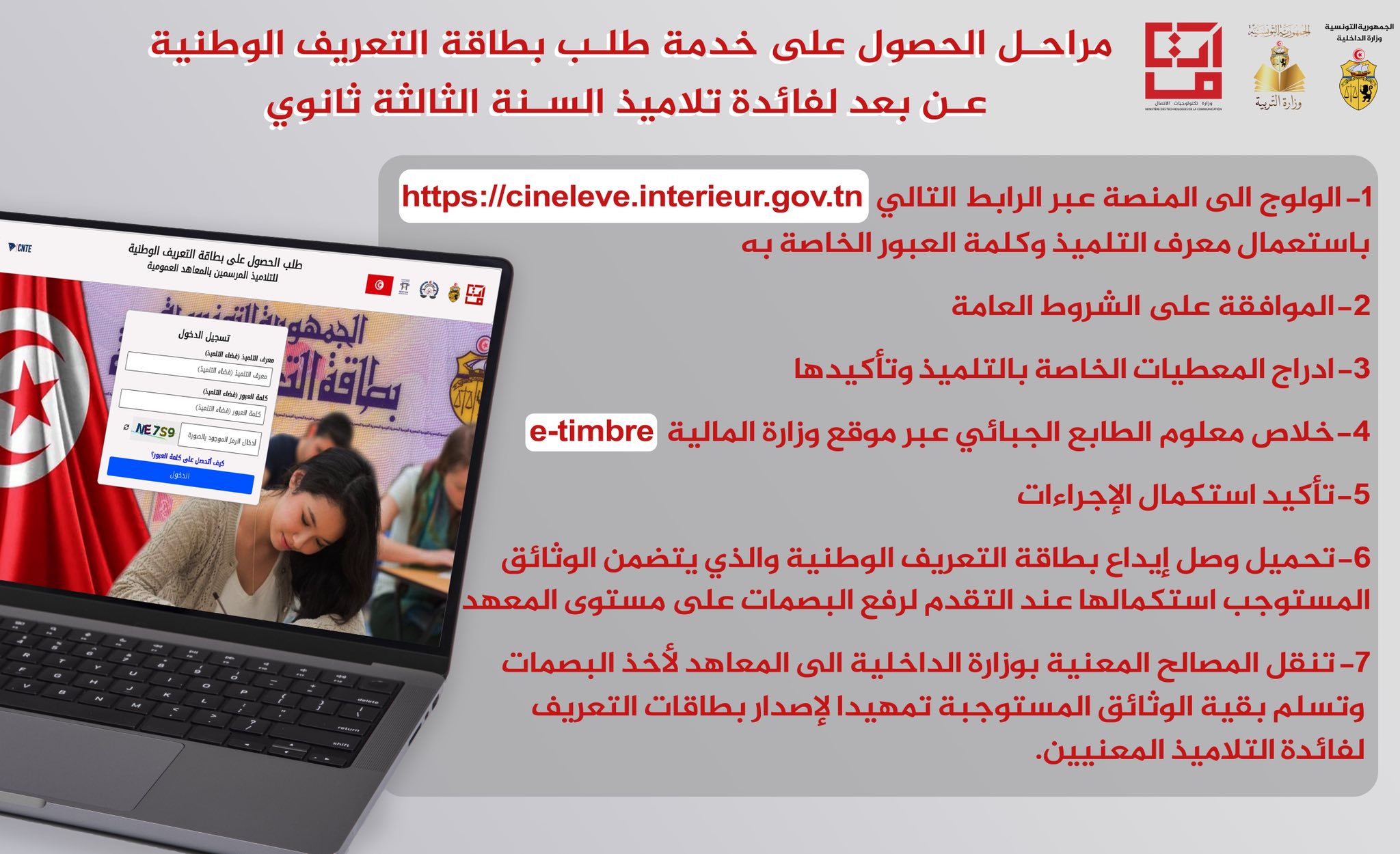 خدمة طلب بطاقة التعريف الوطنية عن بعد لفائدة تلاميذ الثالثة ثانوي